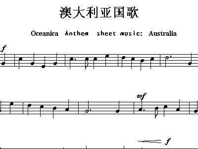 > 各国国歌主旋律 澳大利亚 Oceanica Anthem shee music Australia