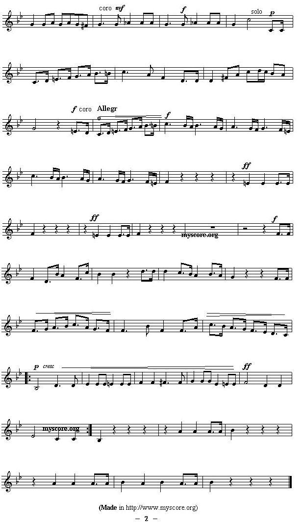 各国国歌主旋律 玻利维亚 Ameriacn Anthem sheet music Bolivia