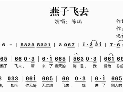 - [二胡谱,歌谱] 燕子飞去 陈瑞