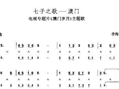 - [歌谱,小提琴谱] 七子之歌 澳门