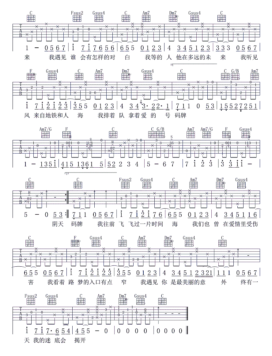 - [钢琴谱,歌谱] 遇见 孙燕姿