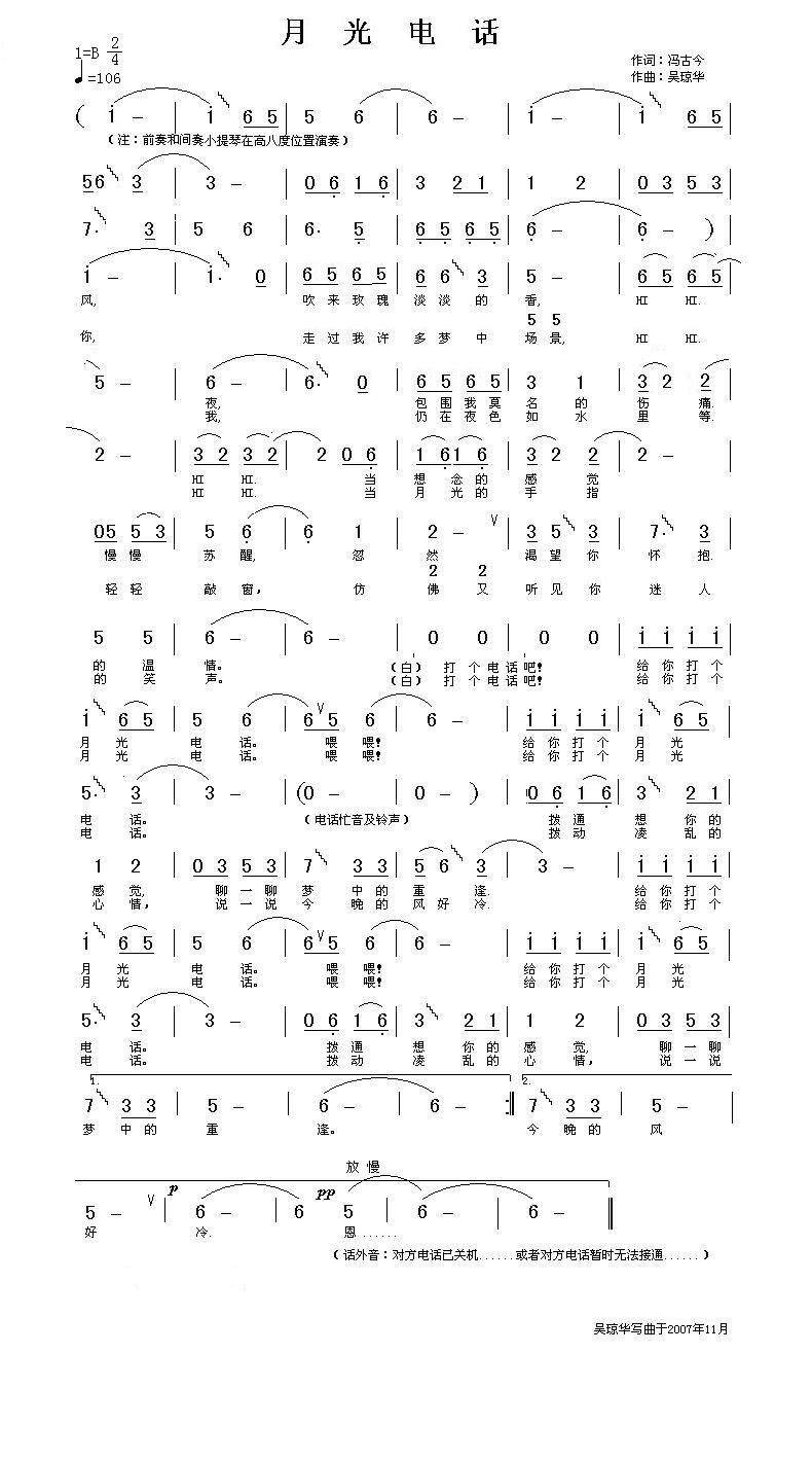 - [歌谱] 月光电话