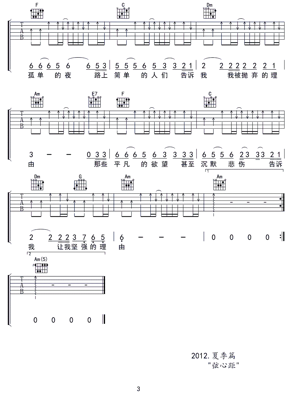 - [歌谱,吉他谱] 坚强的理由