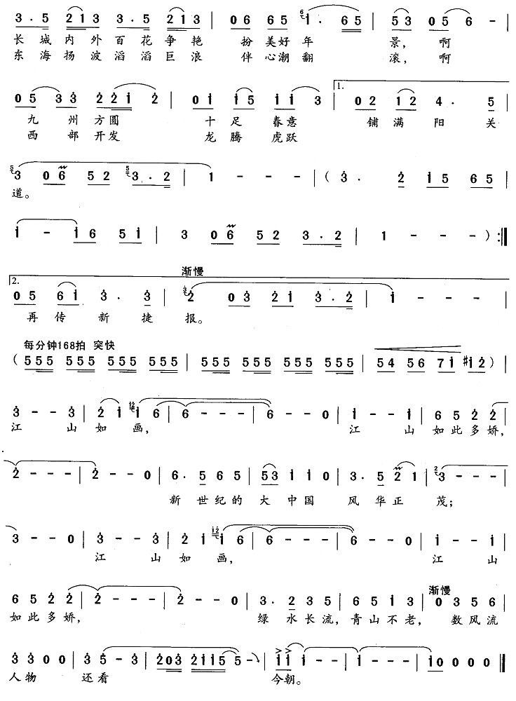 - [歌谱] 江山颂