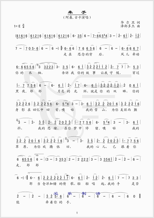 - [歌谱] 牵手