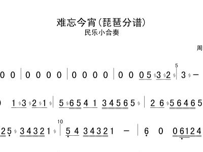 - [分谱,歌谱,琵琶谱,总谱] 难忘今宵 琵琶