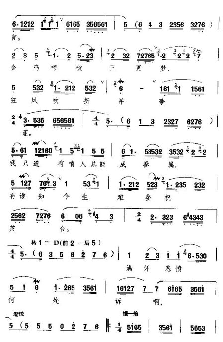 - [歌谱] 记得草桥两结拜 梁山伯与祝英台 梁山伯 祝英台唱段