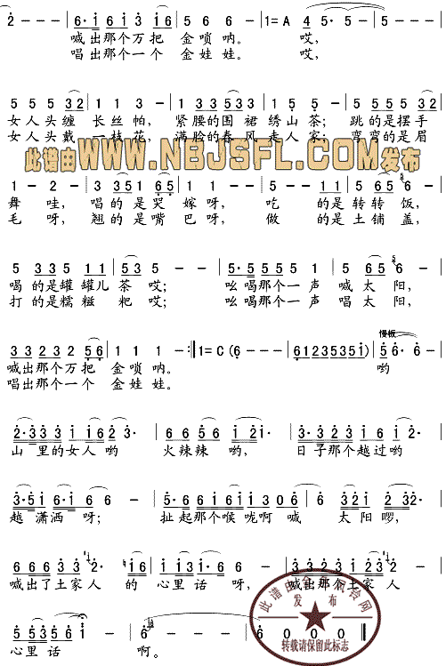 山里的女人喊太阳 钢琴伴奏谱