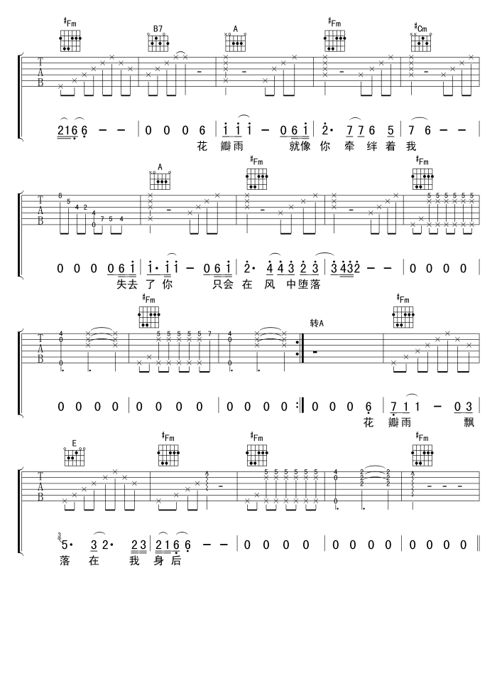 - [吉他谱] 花瓣雨