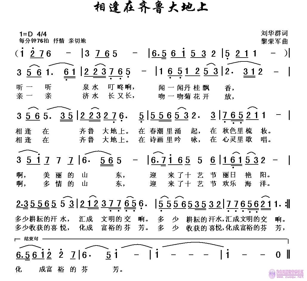 简谱网 > 歌谱 > 相逢在齐鲁大地上