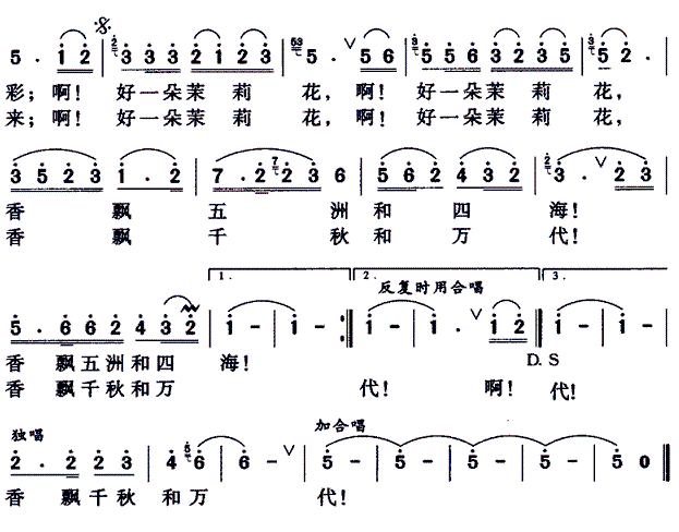 - [歌谱,古筝谱,琵琶谱,手风琴谱] 茉莉花