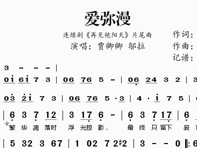 > 爱弥漫 电视剧 再见艳阳天 片尾曲 贾卿卿 邬拉