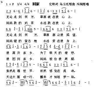 - [歌谱] 回家 回家