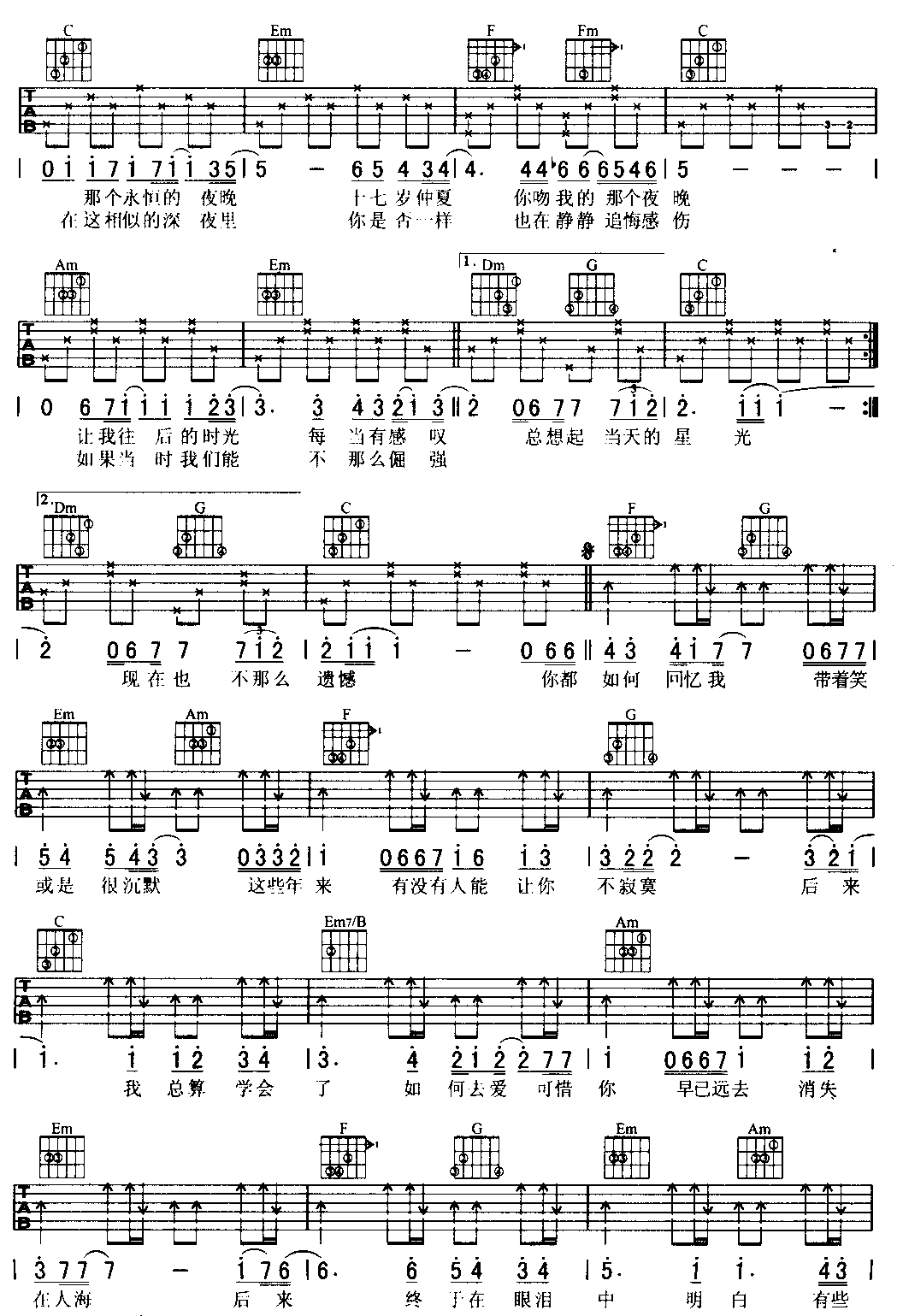 - [吉他谱] 后来 刘若英 版本2
