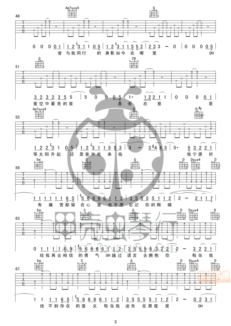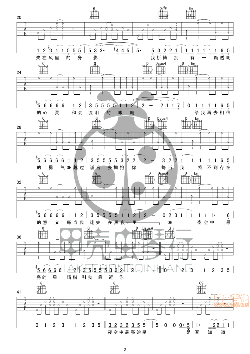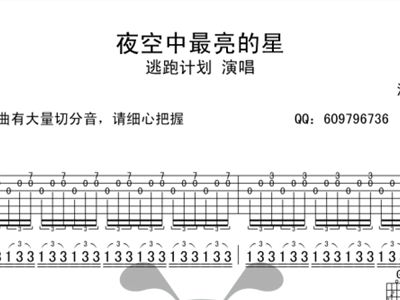 原版编配 夜空中最亮的星 逃跑计划弹唱谱 by lxguitar