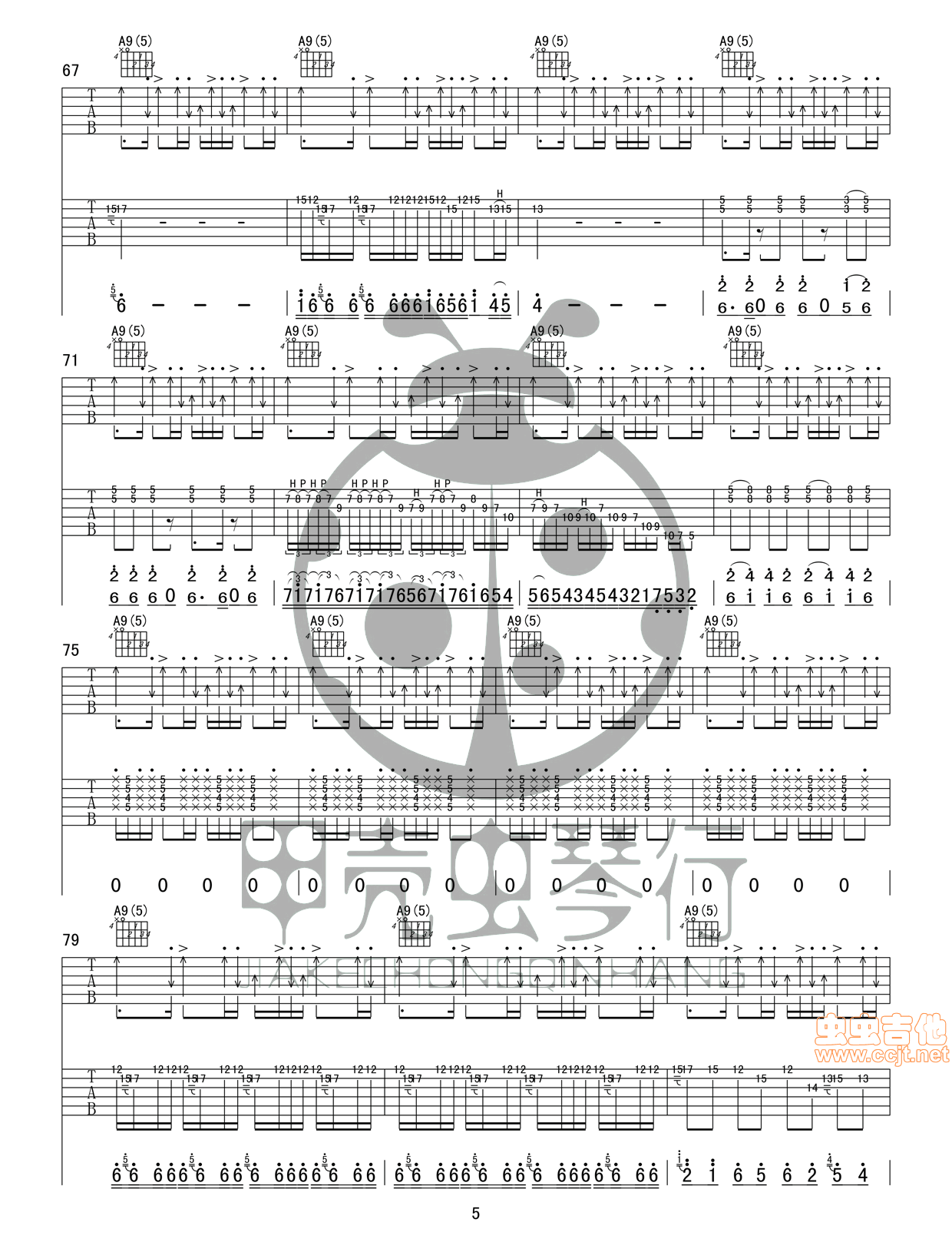 - [吉他谱] 一无所有 双吉他 贝司谱