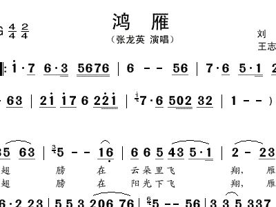 - [歌谱] 看见鸿雁就想起了你 张远平