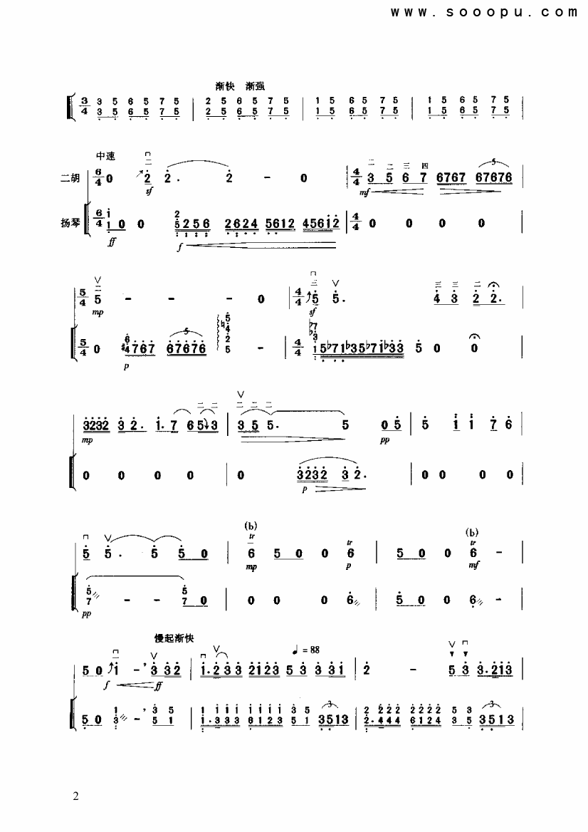 - [钢琴谱,歌谱] 二泉映月 钢伴版