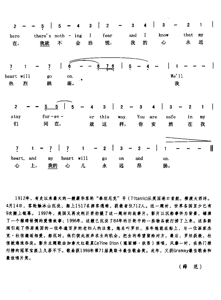 My Heart Will Go On 电影 泰坦尼克 主题曲