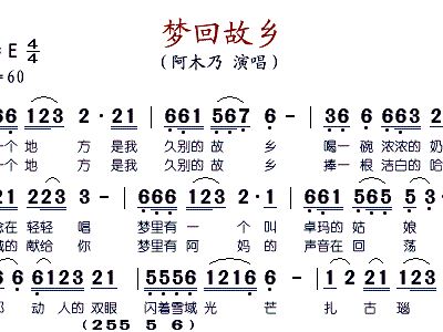 - [歌谱] 梦回故乡 阿丽玛