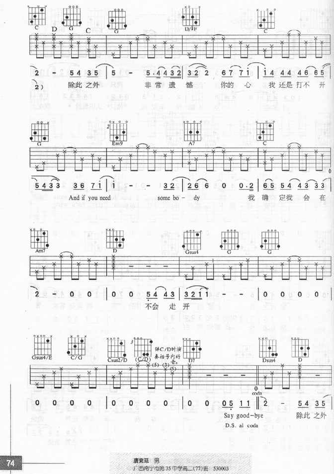 - [歌谱,吉他谱] 除此之外