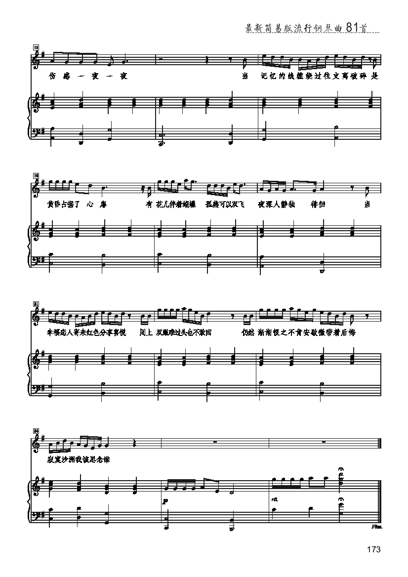 - [钢琴谱] 寂寞沙洲冷 钢琴伴奏谱