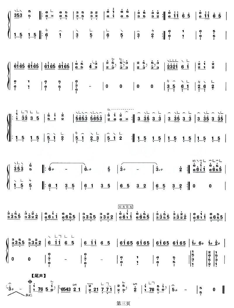 - [歌谱,古筝谱] 五更调