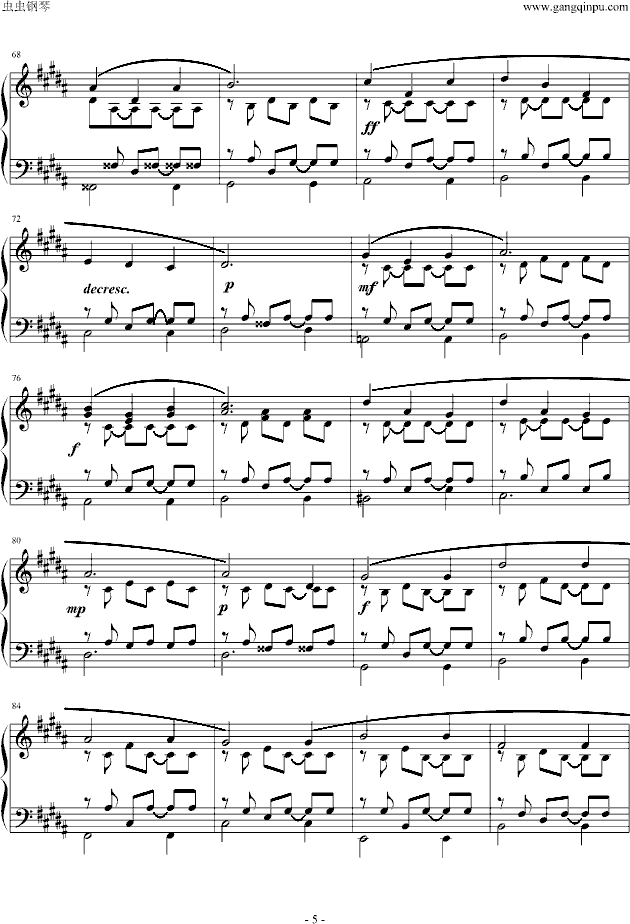 - [钢琴谱,歌谱] 鸽子回旋舞