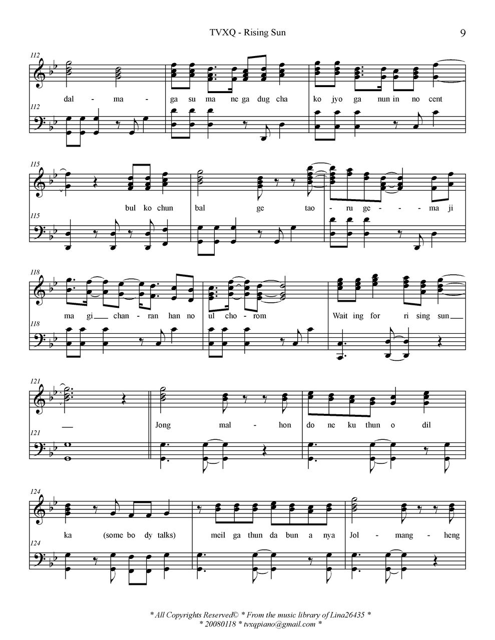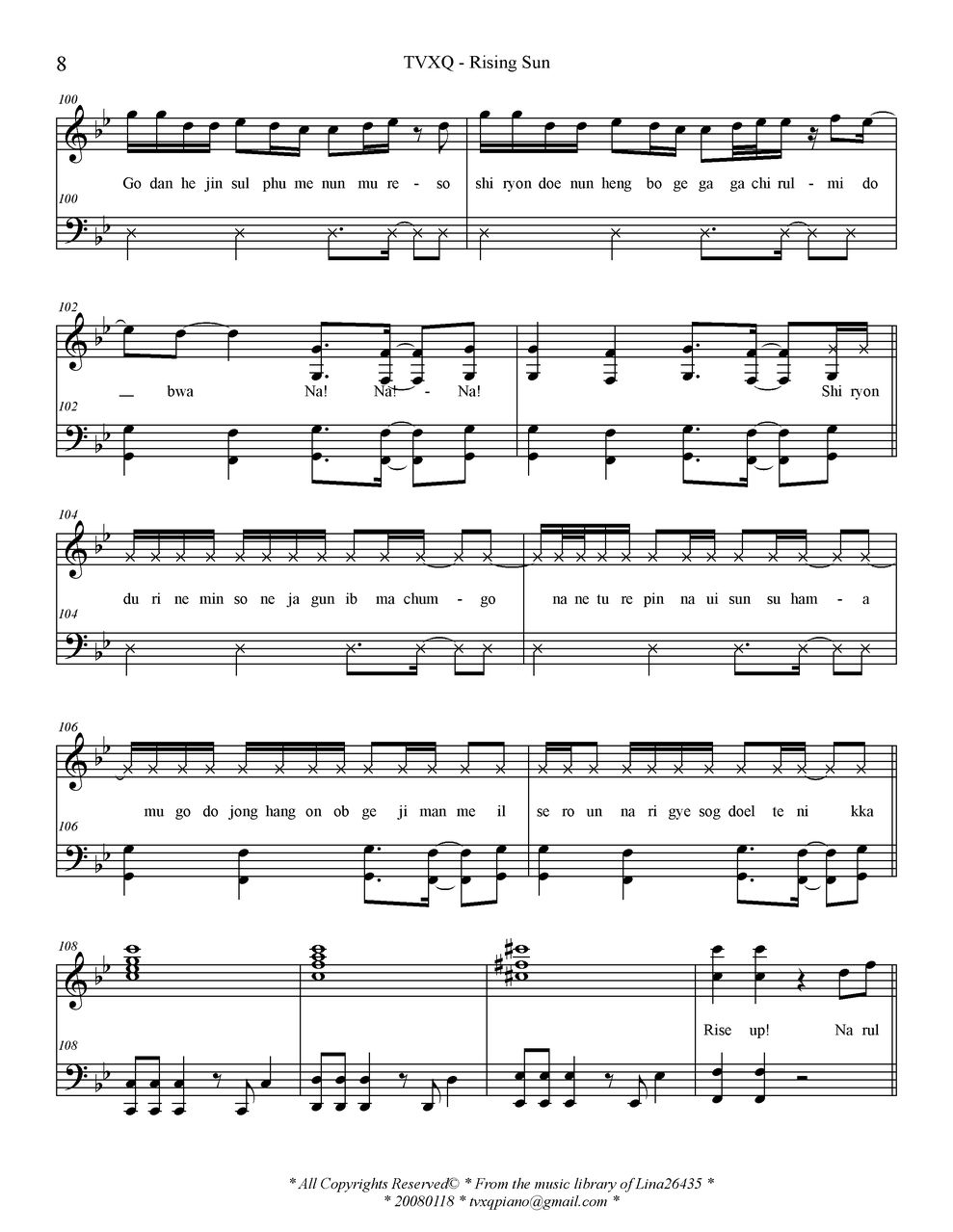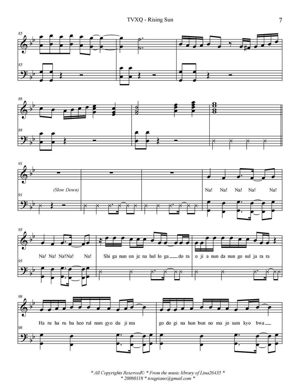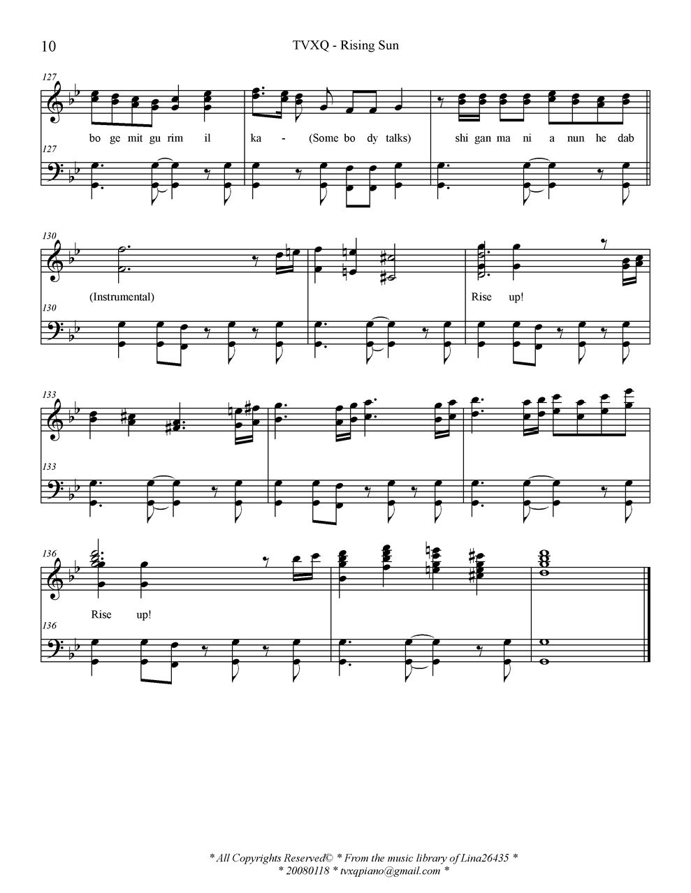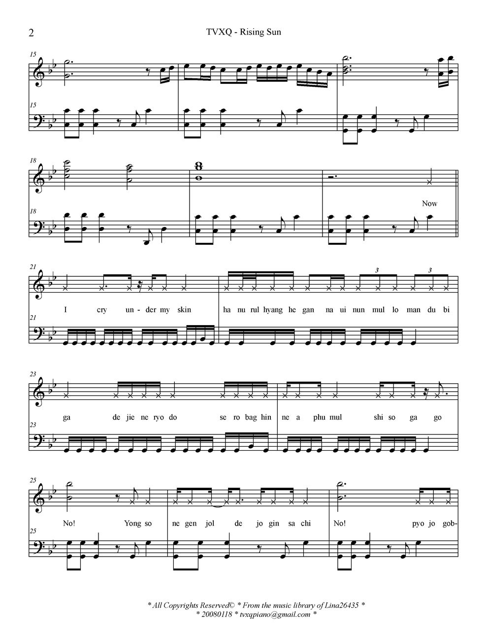 - [钢琴谱,歌谱] Rising Sun