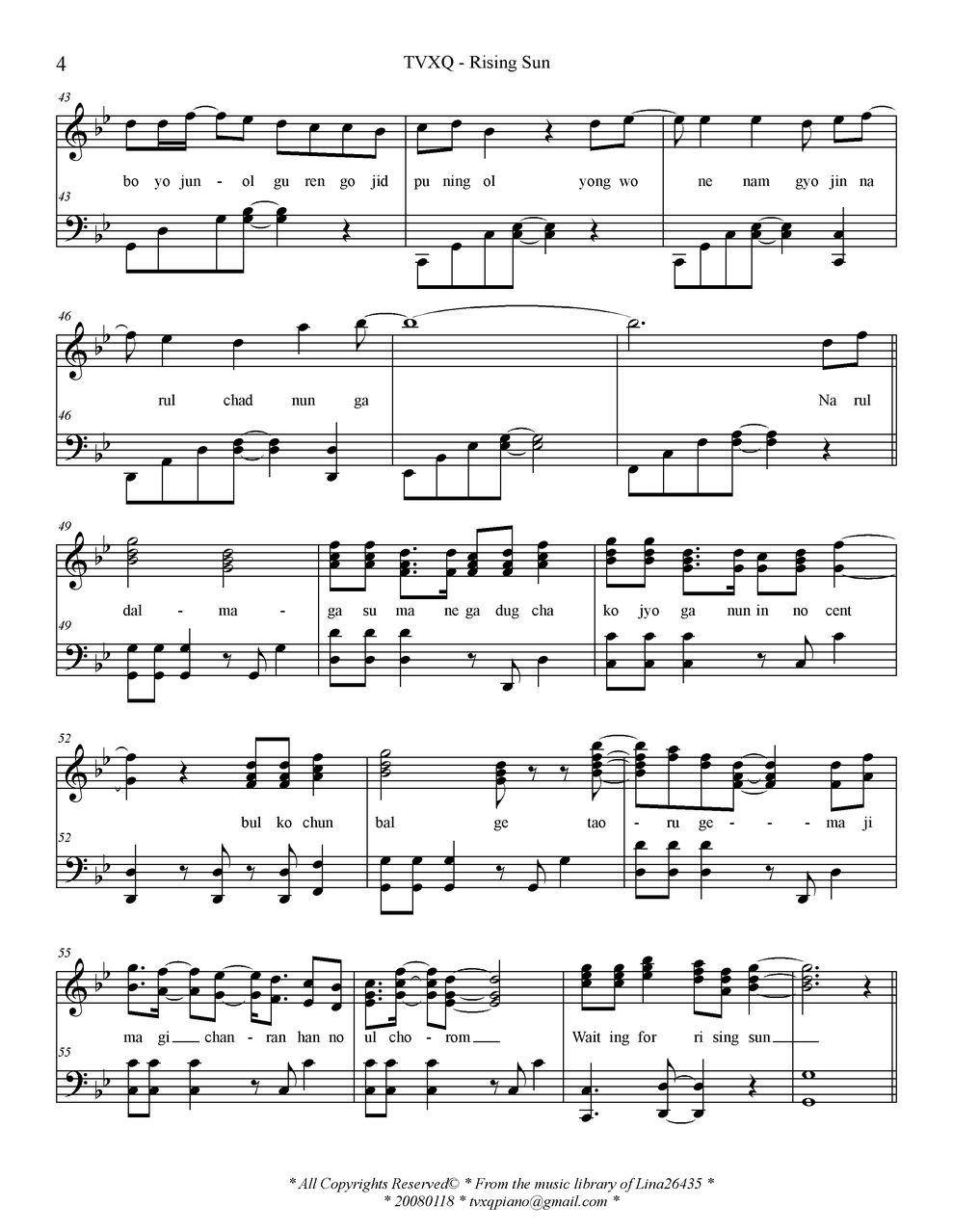 - [歌谱] Rising Sun