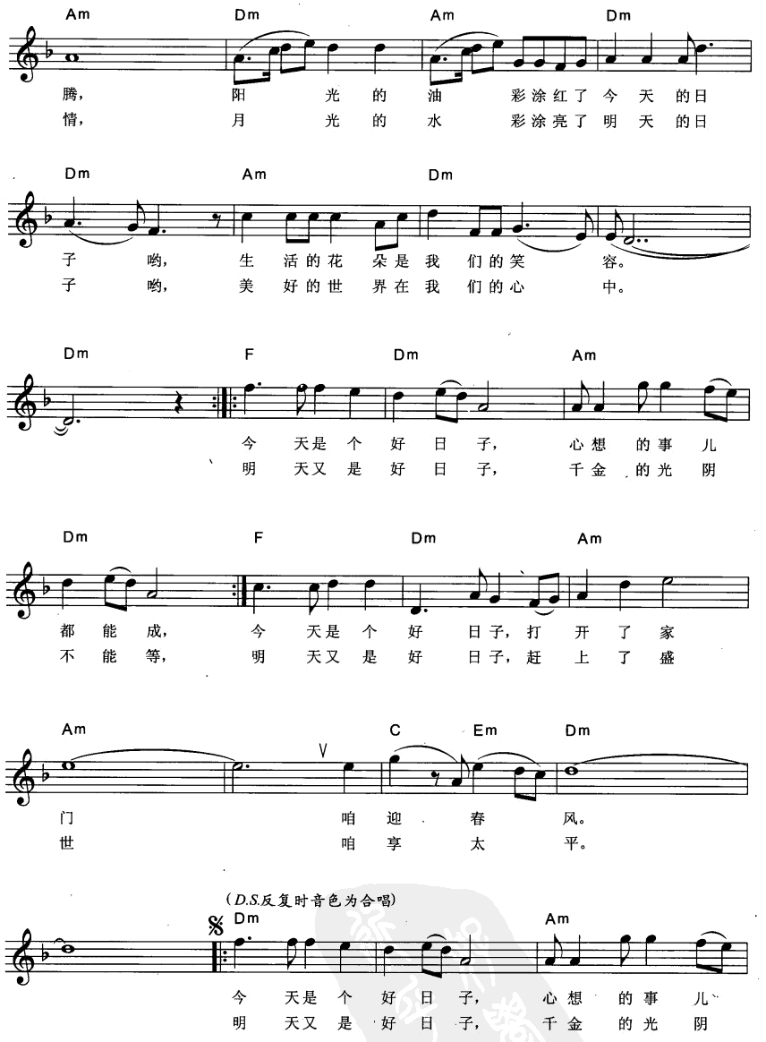 - [笛子谱,分谱,总谱] 好日子 梆笛