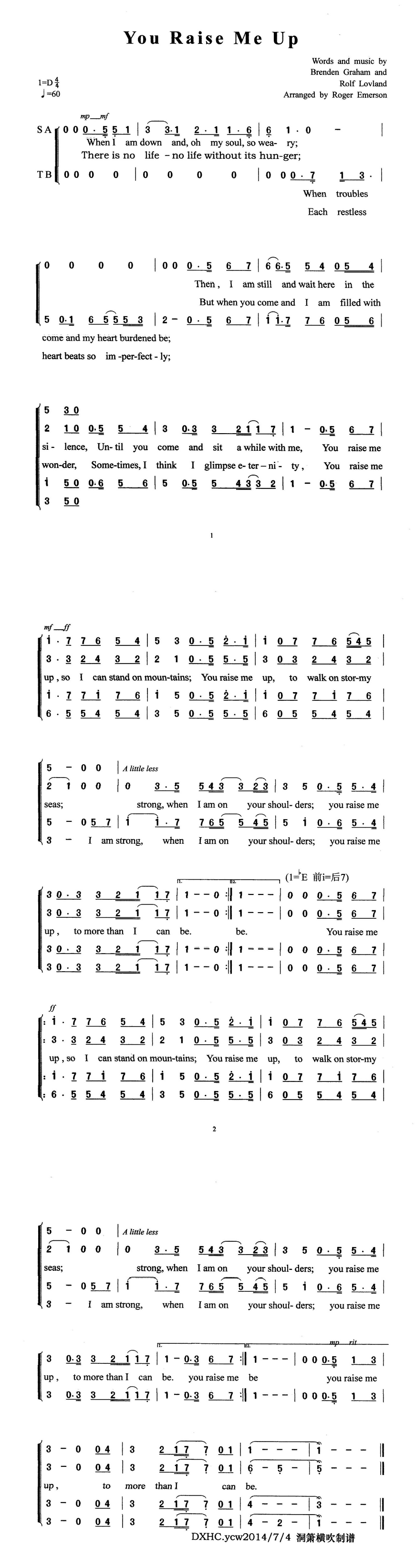 You Raise Me Up弹唱谱
