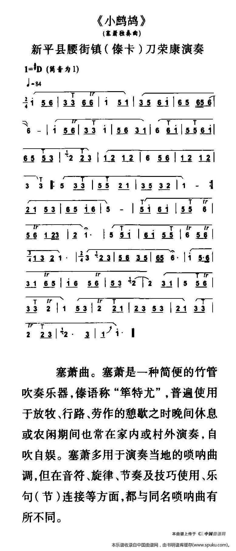 - [箫谱] 小鹧鸪 塞箫独奏