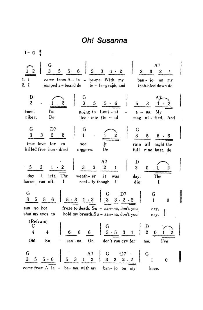 Oh Susanna 啊 苏珊娜 英文儿歌弹唱谱