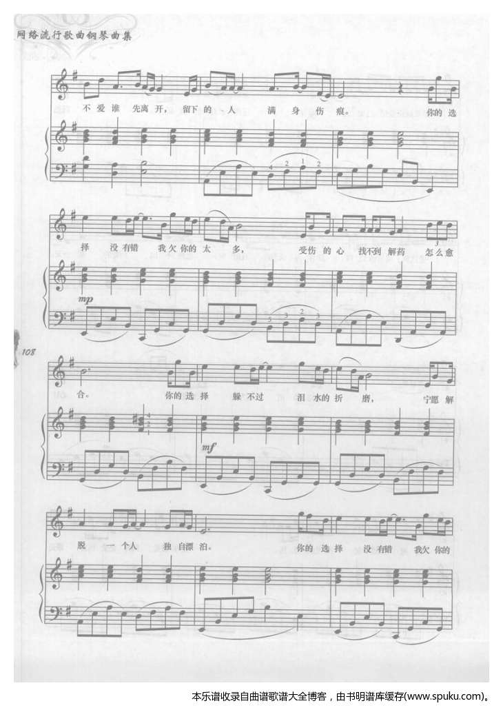 无悔的选择 钢琴伴奏谱