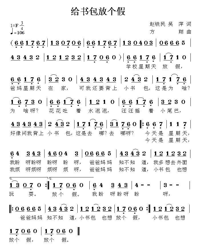 给书包减肥 合唱
