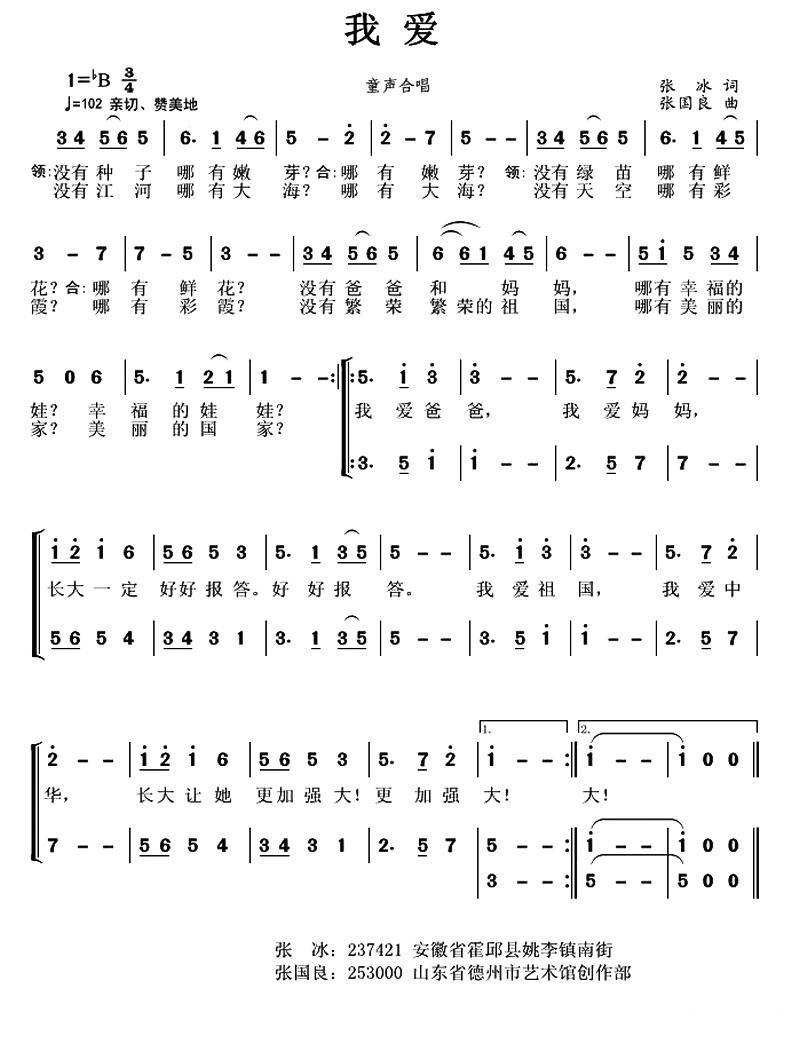 - [歌谱] 我爱