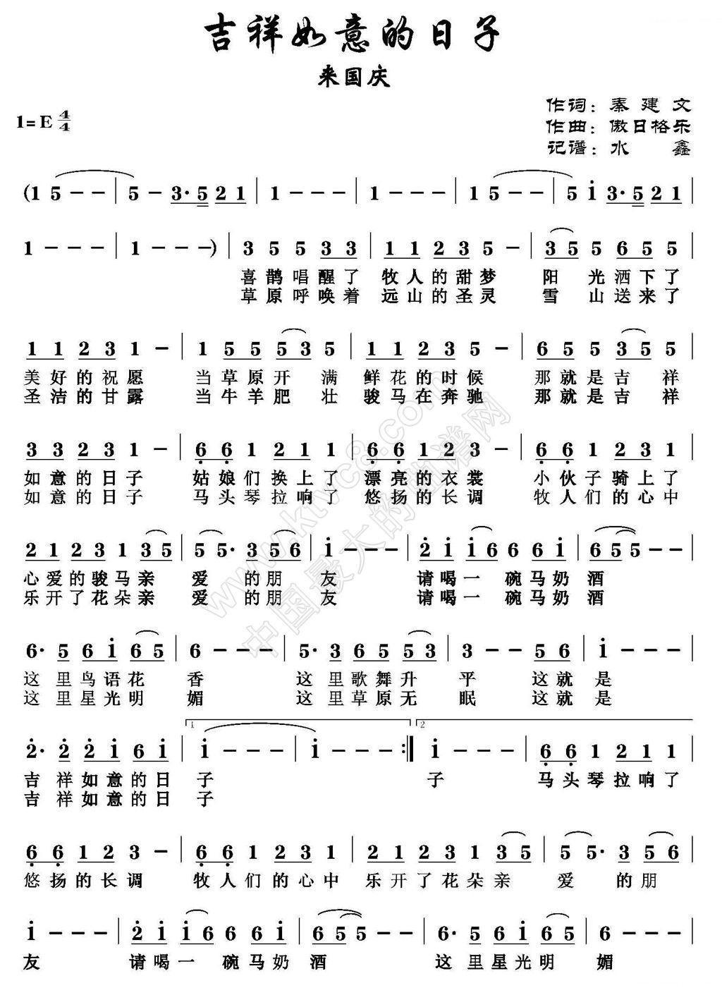 - [歌谱] 吉祥如意的日子