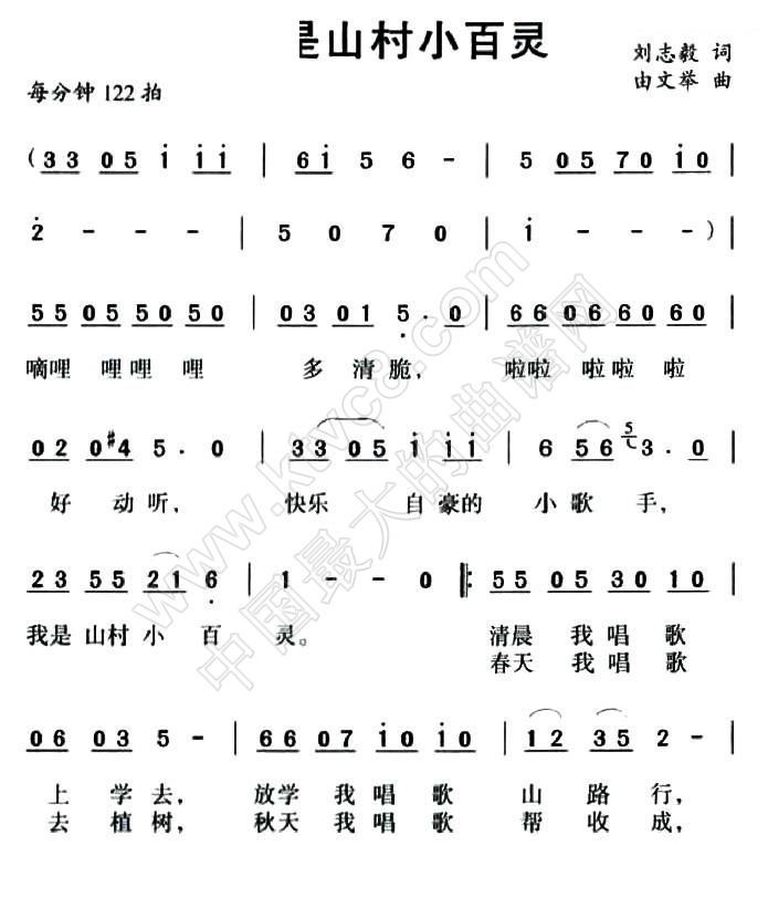 - [歌谱] 我是山村小百灵