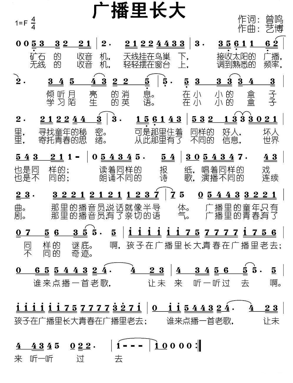 - [歌谱] 共同长大