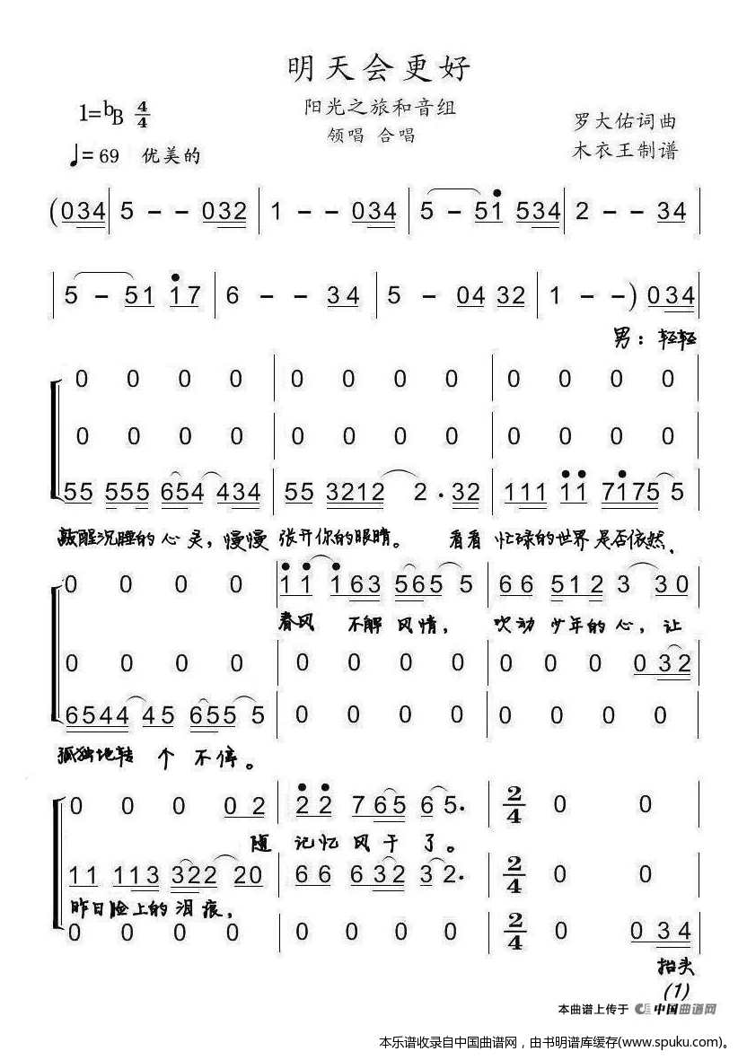 明天会更好 合唱谱