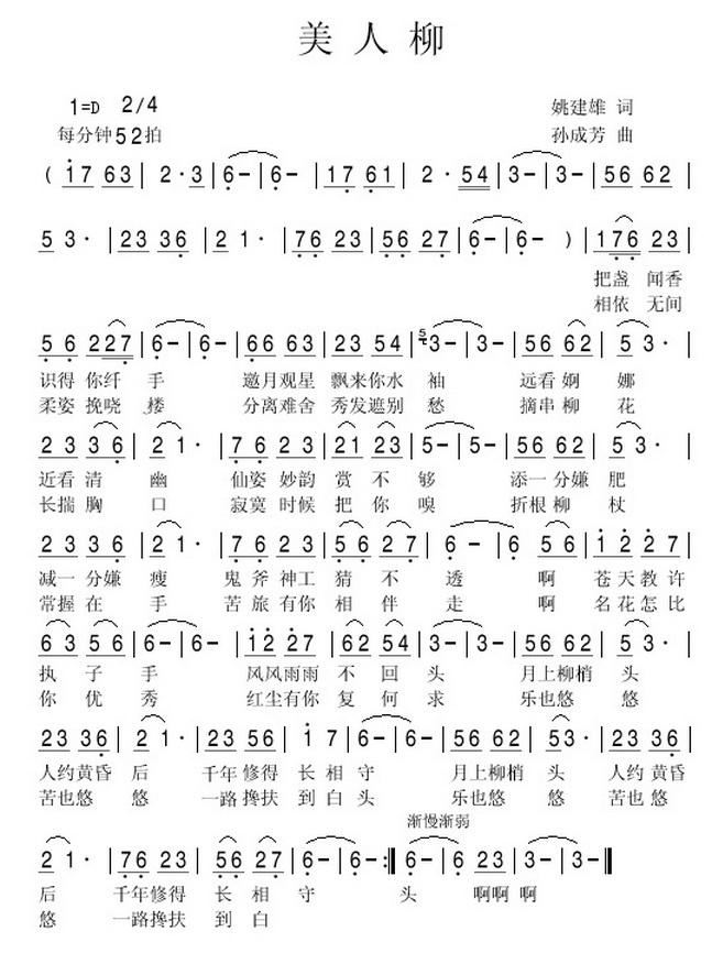 - [歌谱] 美人柳