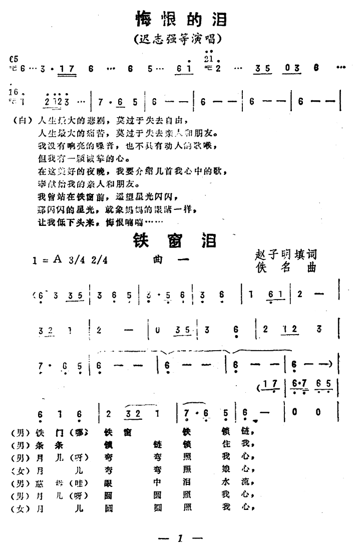 - [歌谱] 铁窗泪