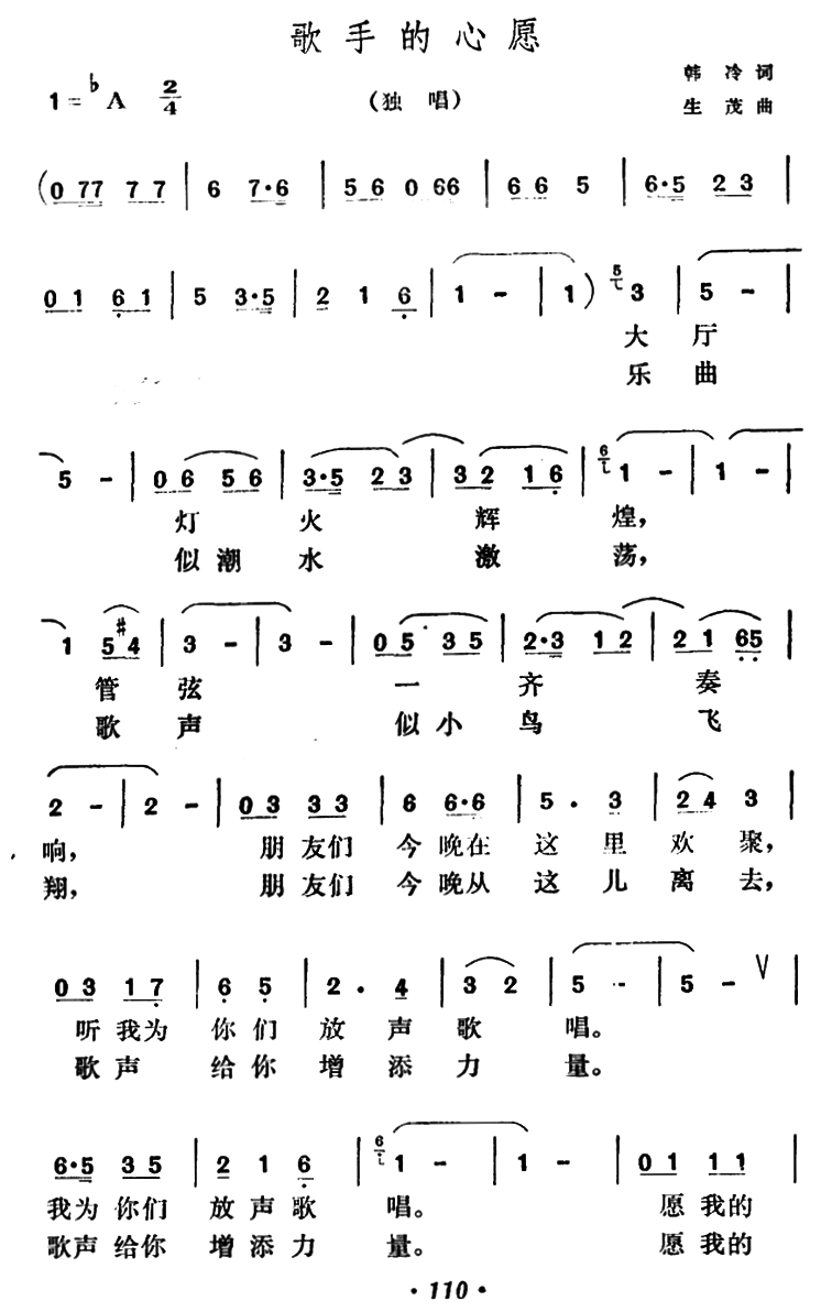 - [歌谱] 歌手的心愿