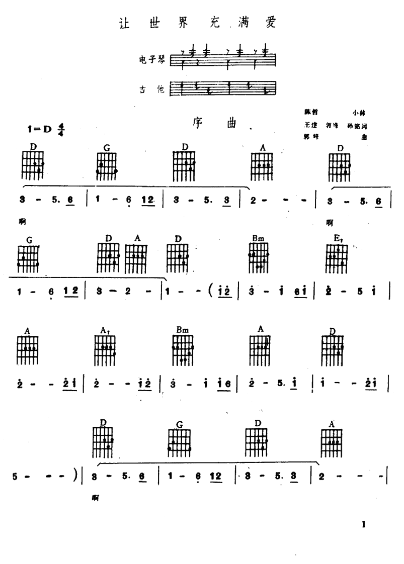 让世界充满爱 电子琴吉他弹唱谱