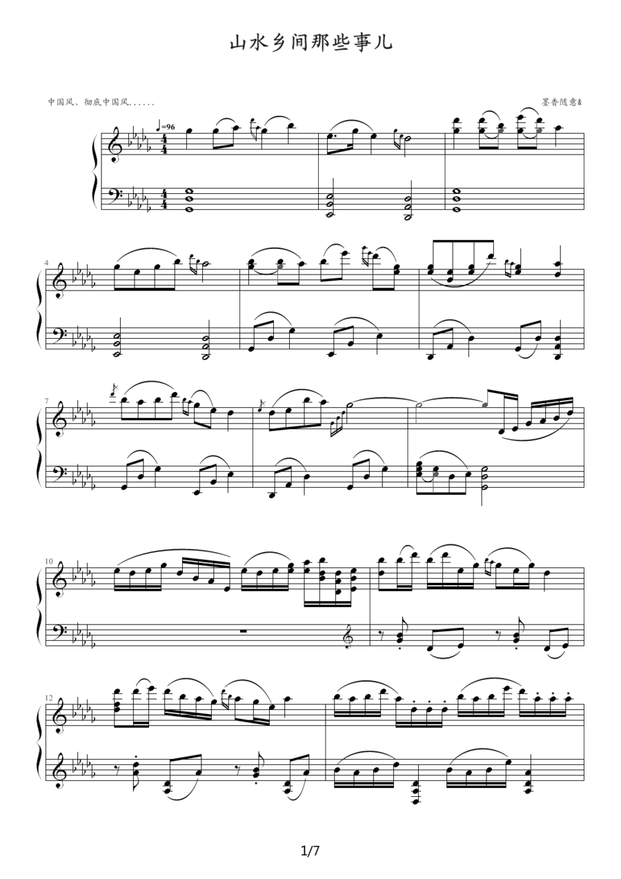 - [钢琴谱,歌谱] 踏秋雨 凝波花