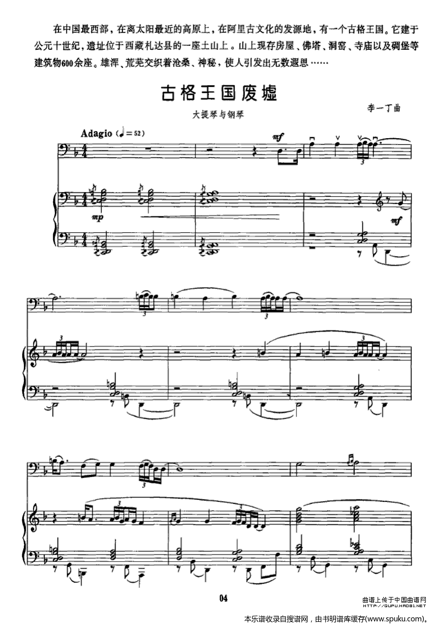 - [大提琴谱,钢琴谱] 古格王国废墟 大提琴 钢琴