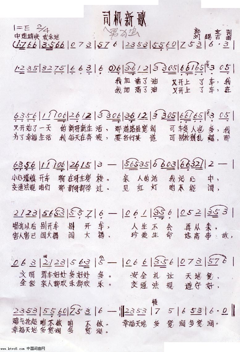 - [歌谱] 出租车司机歌