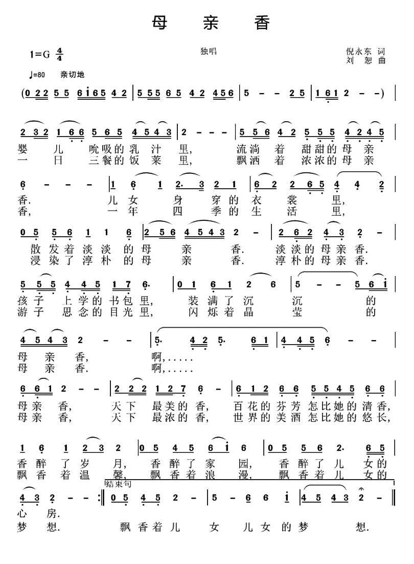 - [歌谱] 母亲香