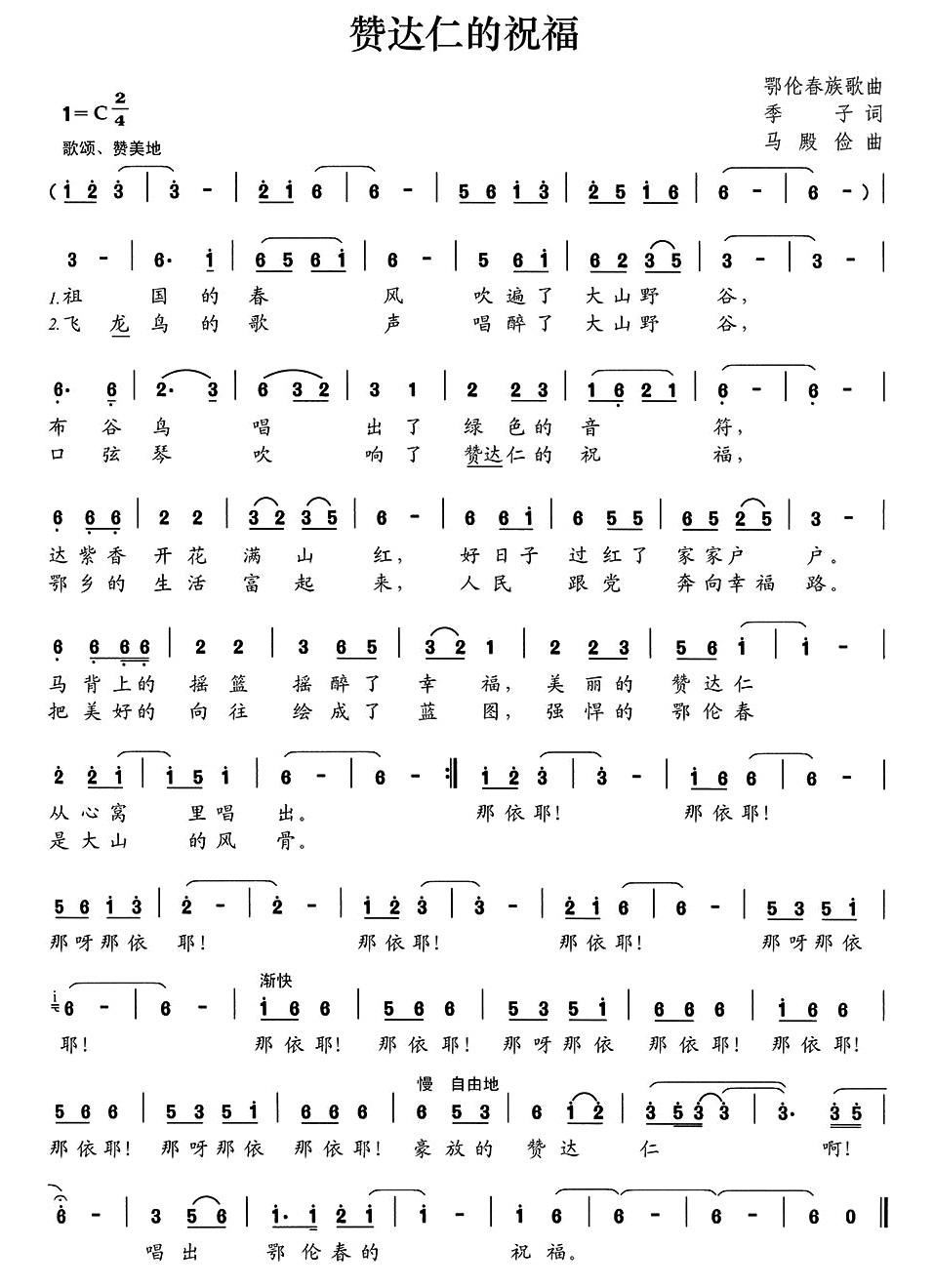 - [歌谱] 祝福